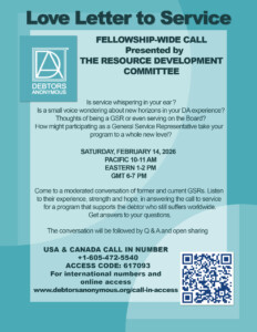 A Fellowship-wide Call on the benefits of Service in D.A., hosted by the WSC Resource Development Committee.